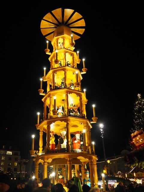 今週の写真はドレスデンのクリスマスマーケットに設置されていたクリスマスタワー。
