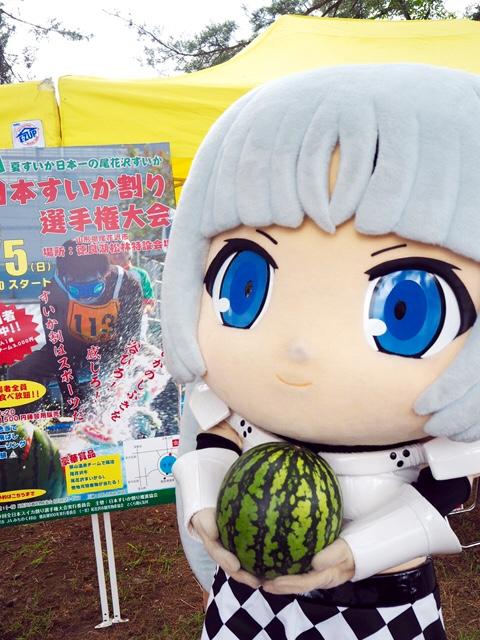 写真のスイカ、着ぐるみモクちゃんが持ってると大きさわからないですけど、これ、中のモクちゃんの顔より大きいんですよ!